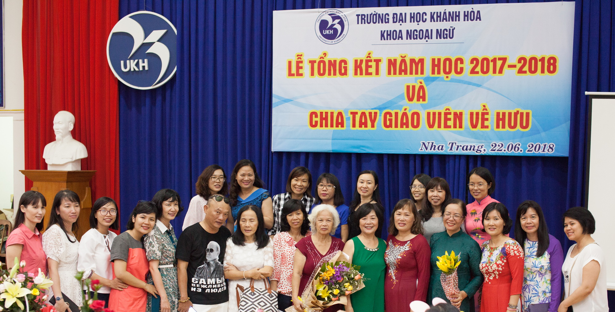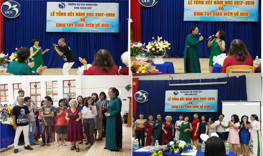 Chiều ngày 22/6/2018, tại Giảng đường Cơ sở 1 trường Đại học Khánh Hoà, Khoa Ngoại ngữ đã tổ chức Lễ Tổng kết năm học 2017-2018 và Chia tay giáo viên về hưu của Khoa. Đến dự có toàn thể giảng viên và sinh viên Khoa Ngoại ngữ cùng các khách mời là cựu giảng viên và cựu sinh viên của Khoa.