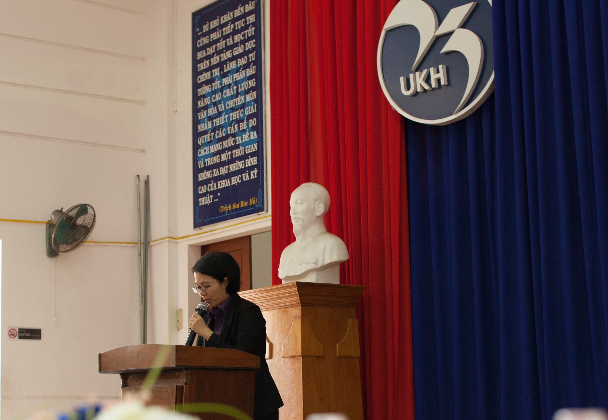 Hình 1 : Ts Võ Tú Phương, Phó Khoa Ngoại ngữ phát biểu tổng kết.