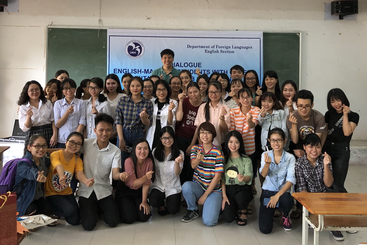 Hình 1 : Sinh viên tiếng Anh chụp hình lưu niệm sau buổi đối thoại