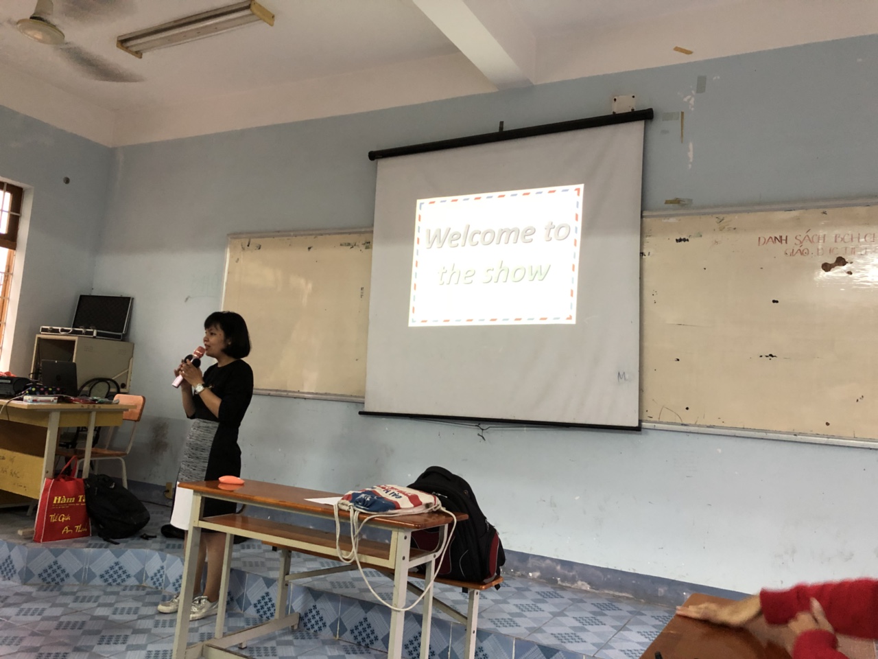 Hình 2 : Cô Trần Thị Hạnh nói chuyện về chủ đề phim ảnh. (Ảnh : cô Lam Trà)