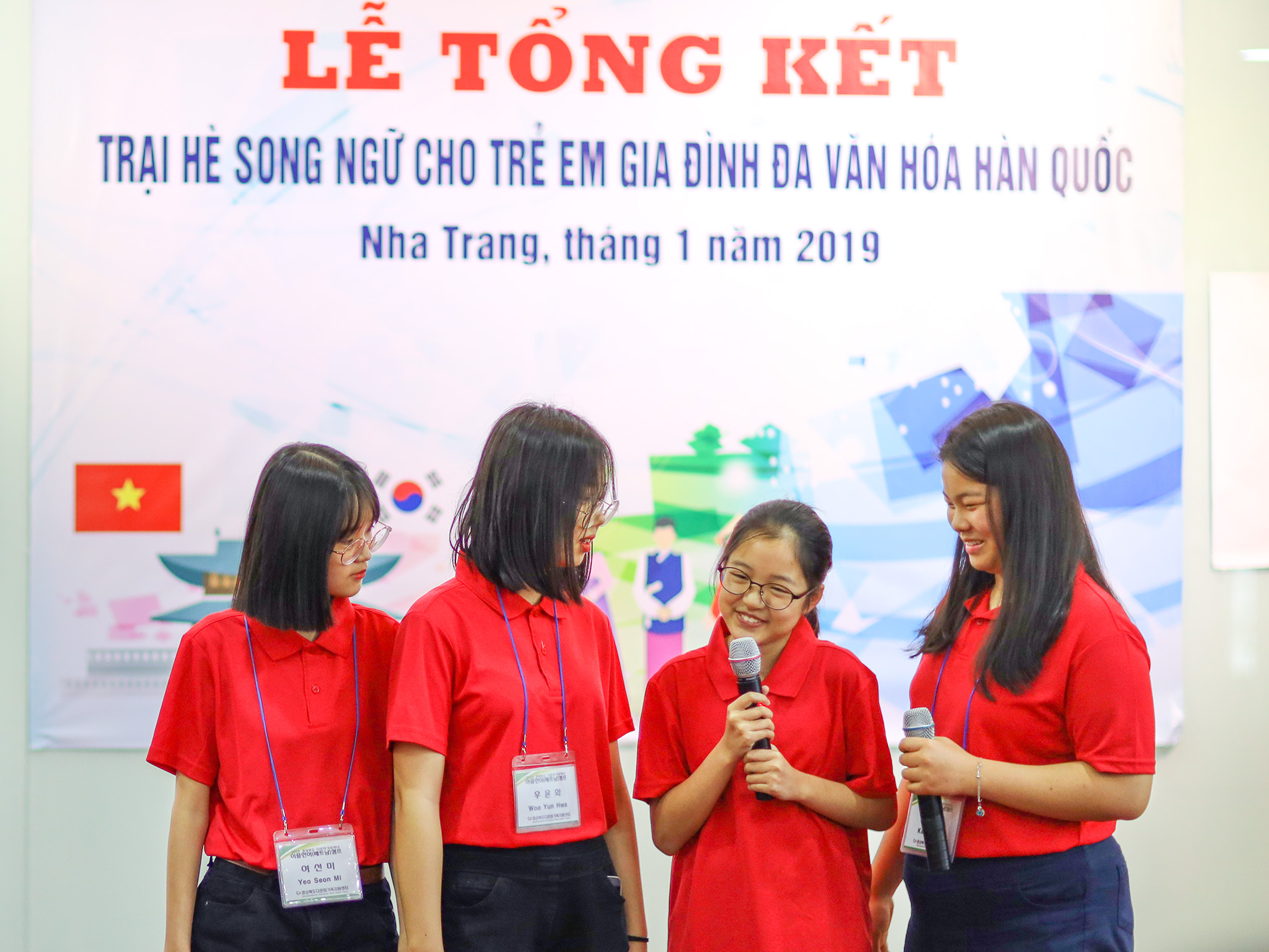 Nhờ sự hỗ trợ nhiệt tình của các giảng viên Trường Đại học Khánh Hòa, các cô của Trung tâm Gia đình đa văn hóa cùng các bạn sinh viên tình nguyện, trong 10 ngày tham dự Hội trại, các em đã được nâng cao vốn Tiếng Việt, giao lưu và kết bạn với các em học sinh Việt Nam, được tham quan các địa danh nổi tiếng tại Khánh Hòa.