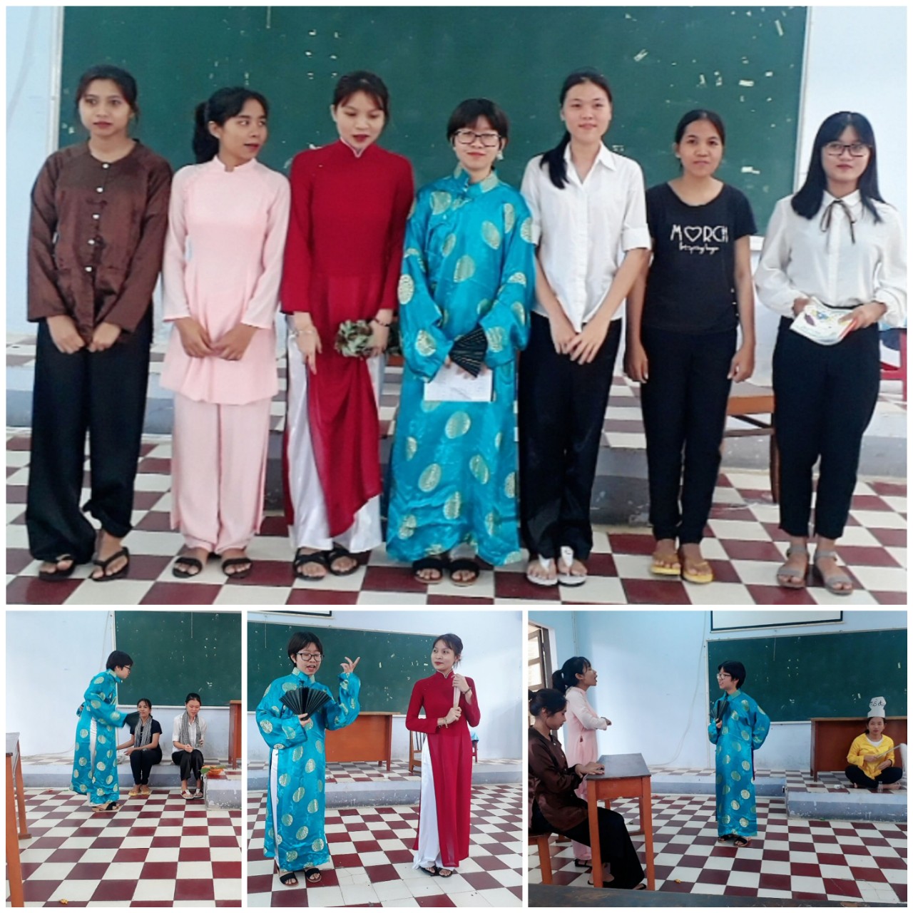 Hình 6. Hoạt cảnh "Cây khế" giúp các em SV Giáo dục Tiểu học K45 bước đầu làm quen với Hội thi và giao lưu, học hỏi với các anh chị khóa trước