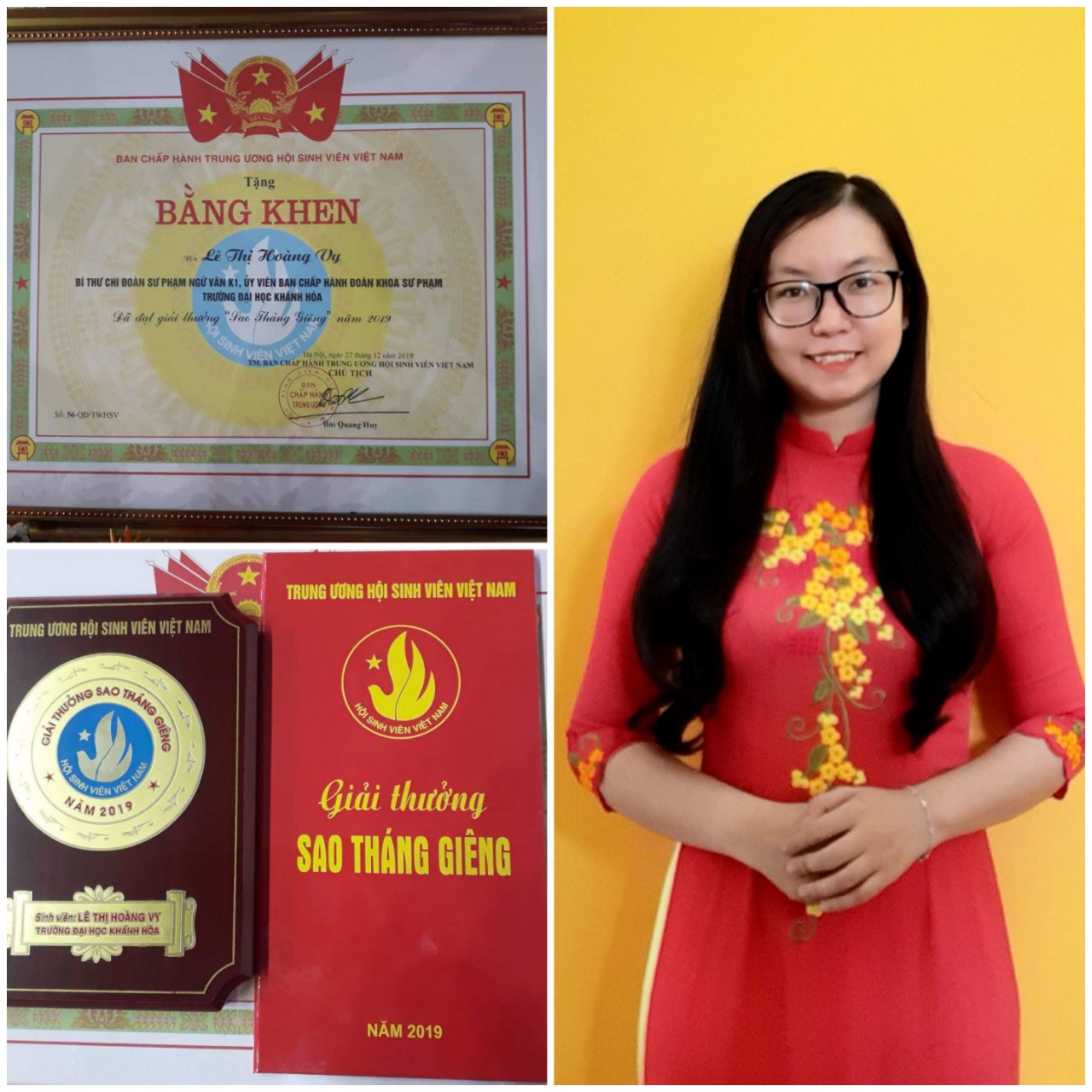 Song, để đạt được danh hiệu ấy không phải là điều dễ dàng khi vừa phải toàn diện cả về học tập lẫn rèn luyện, vừa phải là một cán bộ Đoàn tiêu biểu. Trải qua quá trình nỗ lực không ngừng nghỉ, sinh viên Lê Thị Hoàng Vy – UV BCH Đoàn khoa Sư phạm, Bí thư chi đoàn Sư phạm Ngữ văn K1 đã được danh hiệu “Sao tháng Giêng” năm 2019 do Trung ương Hội Sinh viên Việt Nam trao tặng.