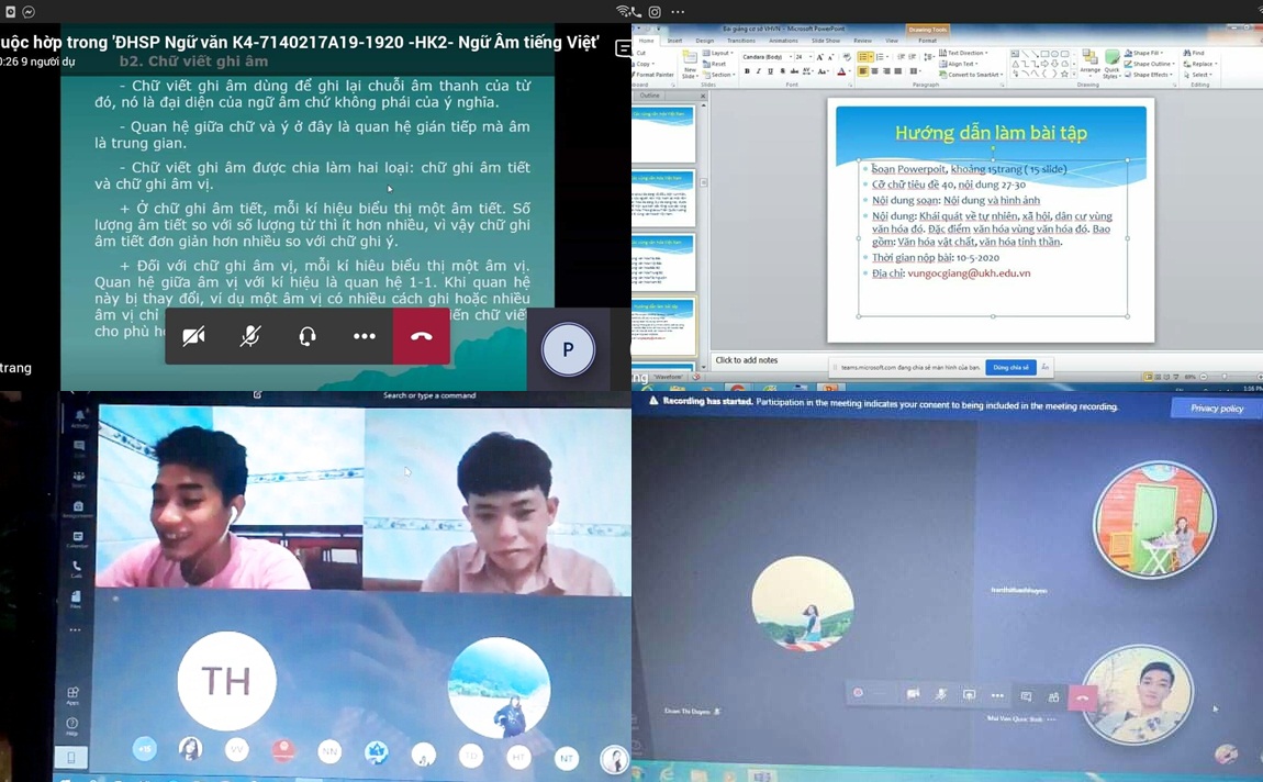 Tuy nhiên, qua kỳ nghỉ có một không hai này, chúng tôi lại được trải nghiệm những hình thức học tập mới trong một môi trường UKH đầy chuyên nghiệp. Dù không thể trực tiếp đến lớp nghe giảng nhưng thầy trò chúng tôi vẫn thường xuyên trao đổi với nhau qua phần mềm Microsoft Teams, mọi kiến thức vẫn được giảng viên truyền đạt đầy đủ và dễ tiếp thu như khi học trên lớp. Sau những khó khăn, bỡ ngỡ ban đầu, chúng tôi đã nhanh chóng thích ứng và ai nấy cũng đều hứng thú với cách học mới này. Việc học trực tuyến không chỉ giúp chúng tôi nâng cao tinh thần tự giác, ý thức học tập của bản thân mà còn để lại những kỷ niệm khó quên trong quãng đời sinh viên của mình.