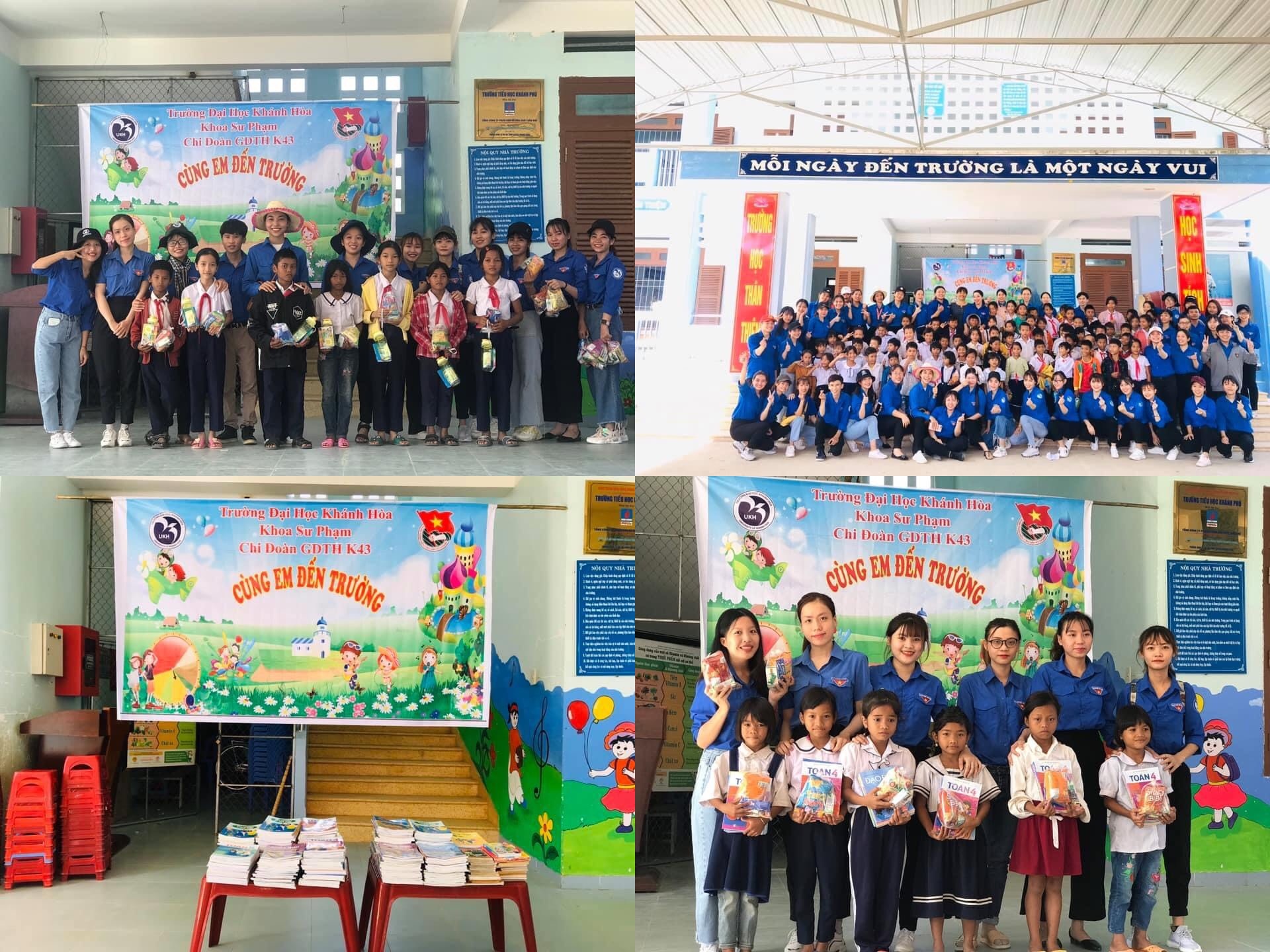 Phát huy tinh thần xung kích, tiên phong của tuổi trẻ, đoàn viên khoa Sư phạm luôn tích cực và hăng hái tham gia các hoạt động thiện nguyện vì cộng đồng. Cụ thể, trong tháng 6 và tháng 7 vừa qua, chi đoàn Sư phạm Toán K3, K4 và chi đoàn GDTH K43 đã tổ chức các Công trình thanh niên “Giữ mãi nụ cười xanh” tại trường Tiểu học Vạn Khánh 2, Vạn Ninh và “Cùng em đến trường” tại trường Tiểu học Khánh Phú, Khánh Vĩnh. Công trình thanh niên đã quyên góp sách cũ để xây dựng thư viện trường, trao nhiều suất quà cho các em học sinh có hoàn cảnh khó khăn nhằm động viên, khích lệ các em trong học tập, giúp các em có thêm động lực đến trường,…Đây không chỉ là dịp để san sẻ yêu thương với những mảnh đời khó khăn mà còn là môi trường lành mạnh, bổ ích giúp các bạn sinh viên xiết chặt tình đoàn kết, gắn bó, tạo kỷ niệm đẹp thời sinh viên, đồng thời học hỏi được những kỹ năng mềm bổ ích.