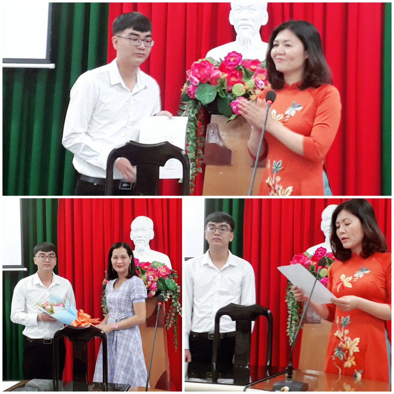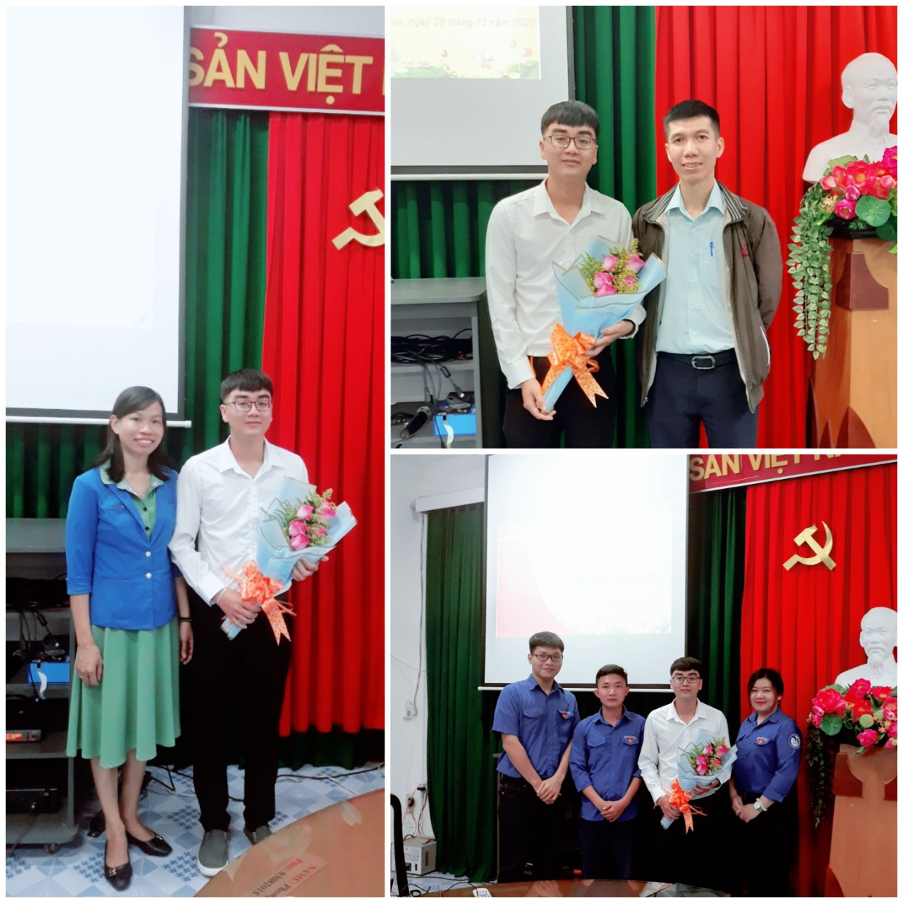 Hình 2. Được nhận Quyết định kết nạp và bó hoa tươi thắm từ chi bộ là kết quả của cả một qúa trình dài nỗ lực phấn đấu của SV Nguyễn Tiến Phát