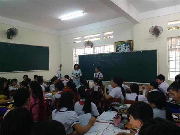 Sinh viên lớp Giáo dục Tiểu học K41 dự giờ dạy mẫu tại trường Tiểu học Lộc Thọ