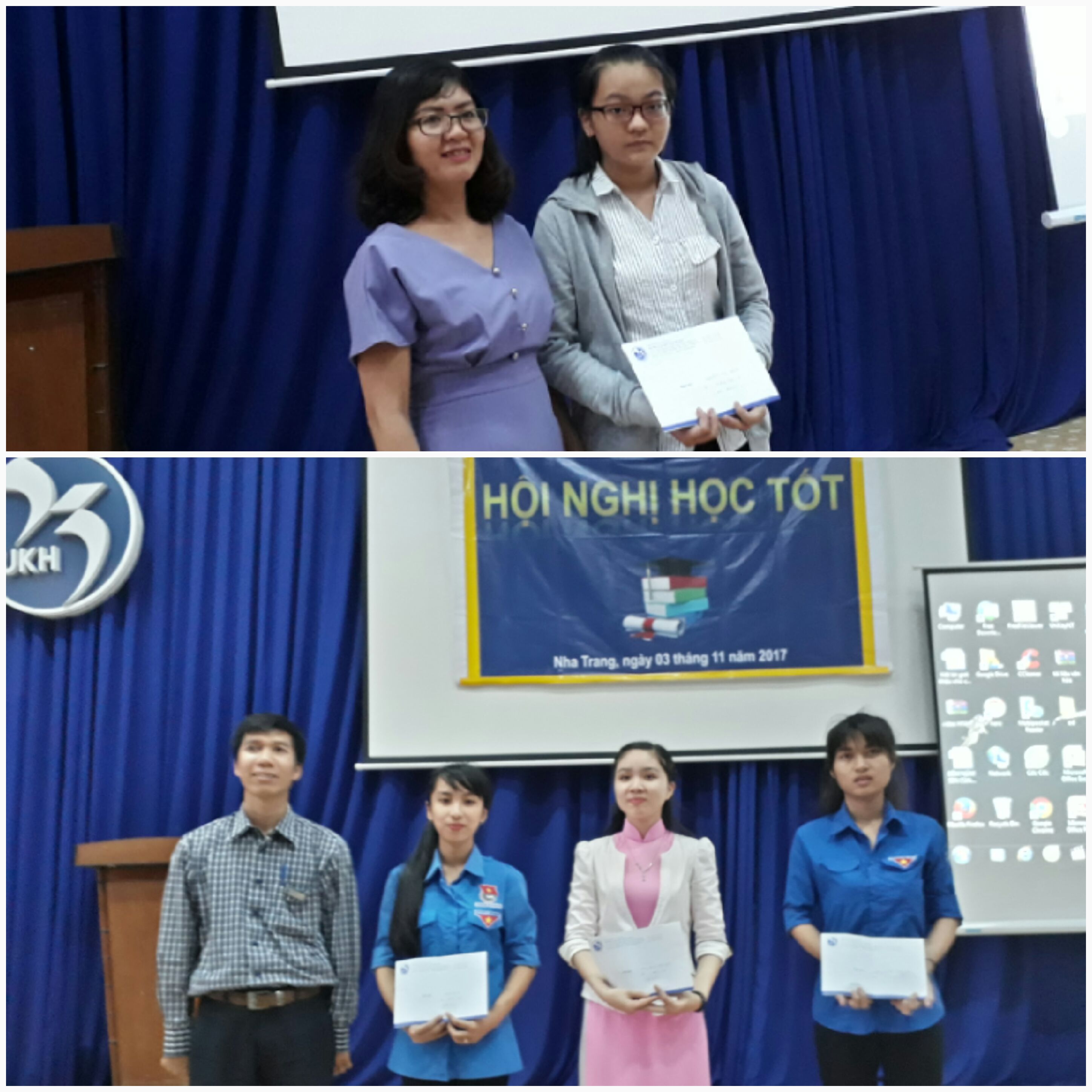 Cũng thông qua Hội nghị, nhằm khuyến khích tinh thần học tập của sinh viên, Lãnh đạo khoa đã trao phần thưởng cho các sinh viên đạt kết quả học tập cao nhất trong năm học 2016 – 2017 và sinh viên đạt danh hiệu thủ khoa đầu vào của Khoa Sư phạm năm học 2017 – 2018.