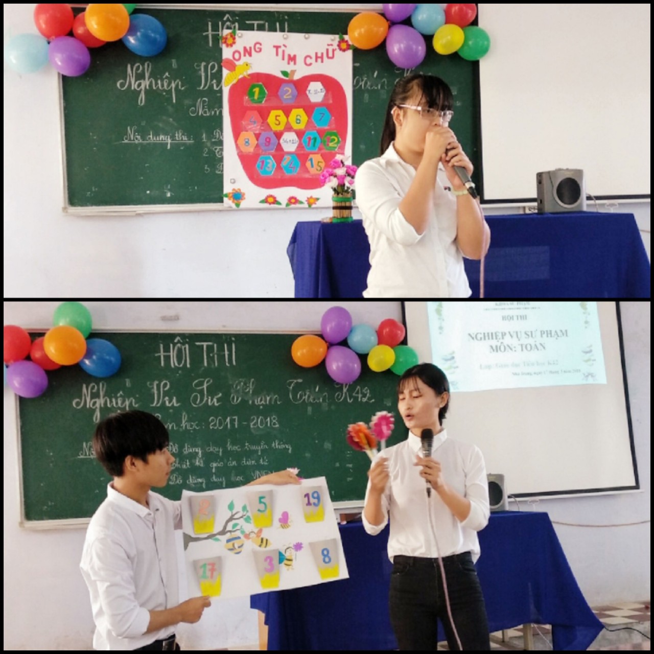 Nhằm trau dồi kiến thức chuyên môn và rèn luyện kĩ năng nghề nghiệp cho sinh viên ngành Giáo dục Tiểu học, ngày 17/03/2018, Tổ Tiểu học, khoa Sư phạm đã tổ chức cuộc thi Thiết kế đồ dùng dạy học Toán cho sinh viên K42 tại Cơ sở 1, trường Đại học Khánh Hòa.