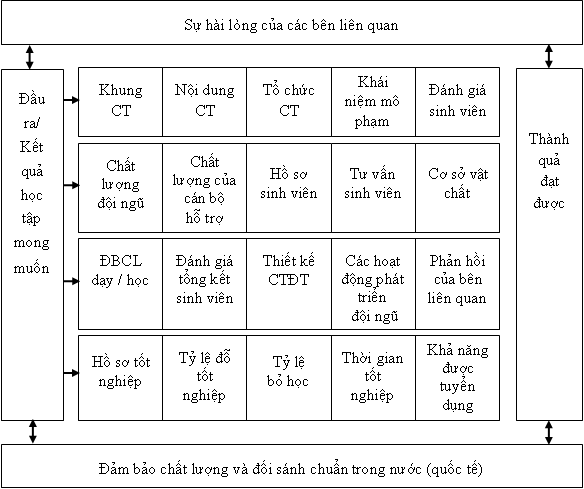 ĐBCL chiến lược cấp cơ sở giáo dục (cấp trường) gồm 11 tiểu chuẩn được minh họa trong Hình 2 dưới đây. Đối với GDĐH chất lượng không chỉ được nhìn nhận một cách chi tiết mà còn cần được nhìn nhận một cách tổng thể.