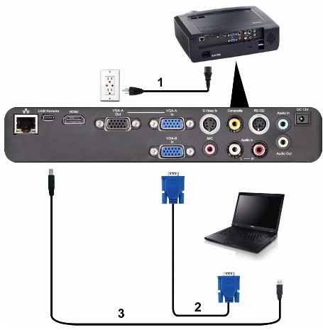 Trước hết bạn phải dùng cáp VGA cắm vào cổng có ký hiệu VGA trên cả laptop lẫn máy chiếu.