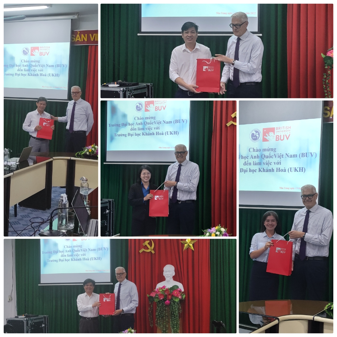 Sáng ngày 13 tháng 6 năm 2022, vào lúc 8 giờ 30 Ban lãnh đạo trường Đại học Khánh Hoà đã có buổi làm việc với đại diện trường đại học Anh Quốc (BUV) tại Phòng họp 1, Trường Đại học Khánh Hòa, Số 1 Nguyễn Chánh, Nha Trang, Khánh Hòa.