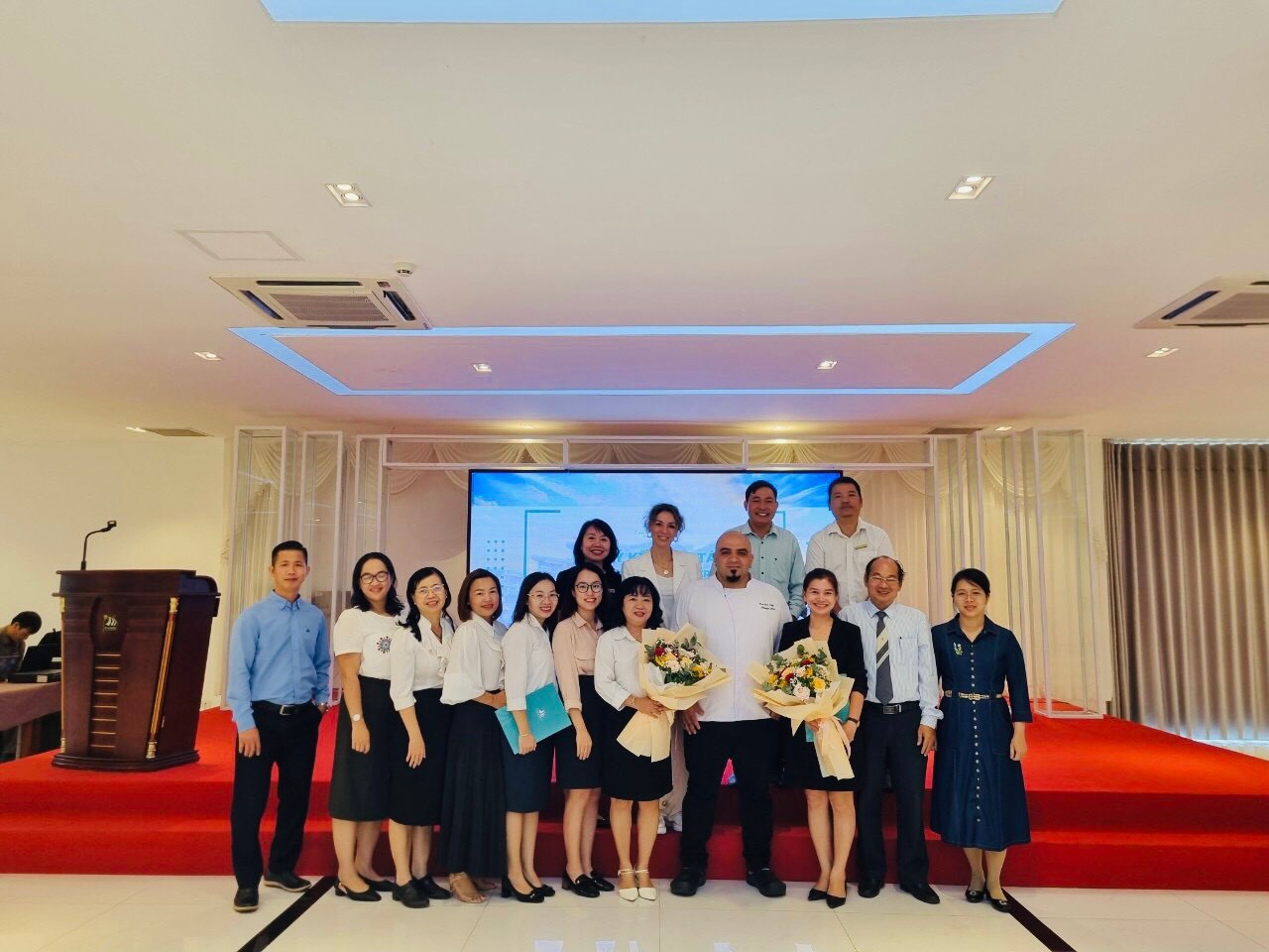 Đại diện bên phía Công ty Cổ phần Cam Ranh Riviera Resort có Ms. Sik Irina - Quản lý Khu nghỉ mát, Ms. Huỳnh Thị Thu Hương - Trưởng phòng Nhân sự, Ms. Phạm Thúy Quỳnh - Trưởng phòng Đào tạo và Trưởng các bộ phận liên quan: Lễ tân, Ẩm thực, Buồng phòng, Bếp,…/Head of Departments: Front Office Manager, Food & Beverage Manager, Executive Housekeeper Manager, Executive Chef,...