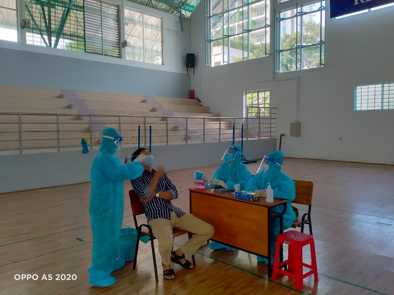Tổ chức lấy mẫu tầm soát Covid-19 cho 100% Cán bộ, giảng viên, sinh viên trước khi mở cửa trường (Hình: Đoàn trường ĐHKH)
