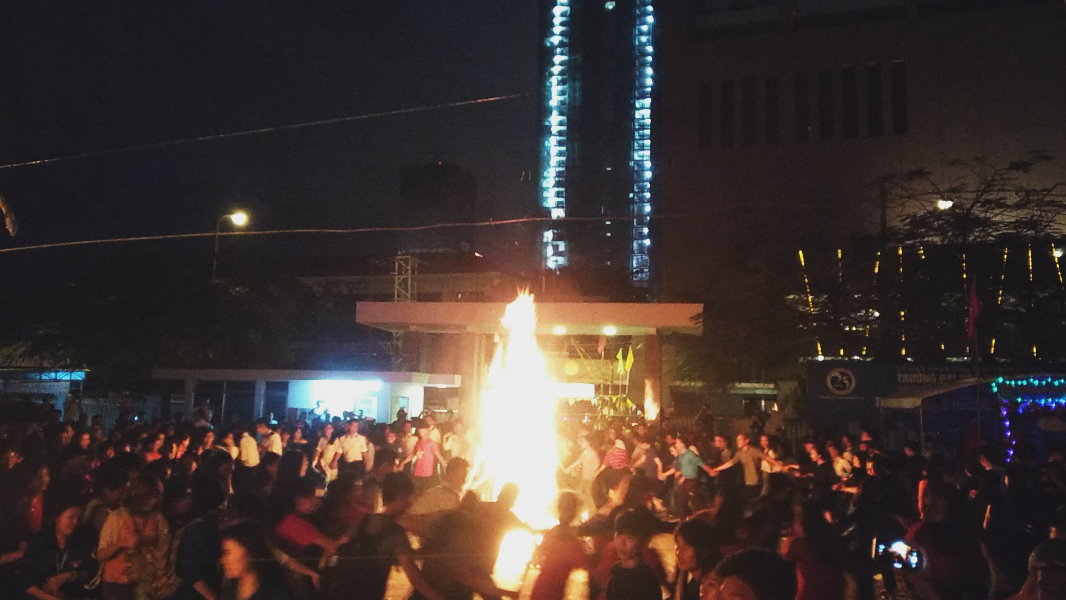 Hình 3: Sinh viên tham gia dự thi các tiết mục văn nghệ, giao lưu văn nghệ với các "chú" bộ đội Hải quân, đốt lửa trại