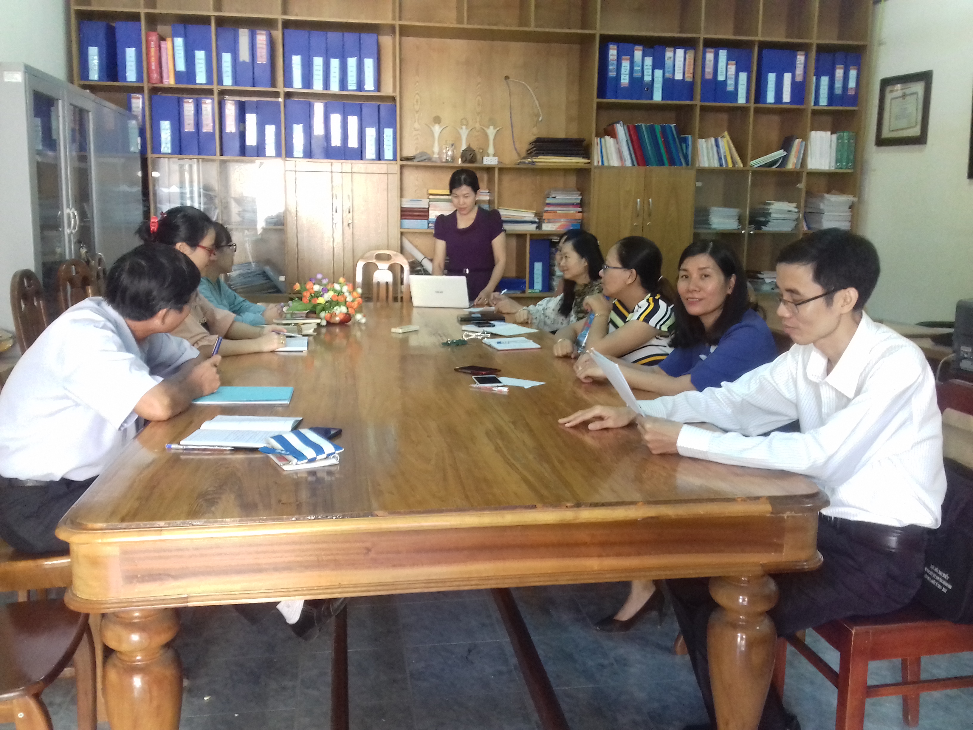 Và buổi báo cáo chuyên đề được thực hiện vào lúc 8h00’ ngày 26/4/2019 tại văn phòng Khoa Quản lý Văn hóa & Giáo dục với sự tham dự đông đủ các giảng viên trong khoa (cô Lâm loan, thầy Huy đi học nghiên cứu sinh; cô Thúy, cô Quốc Ánh nghỉ thai sản).
